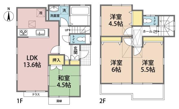 | 築年月 | 2001年10月築 | 間取り | 4LDK (LDK13.6/和室4.5/洋室4.5/洋室6/洋室5.5) | ||