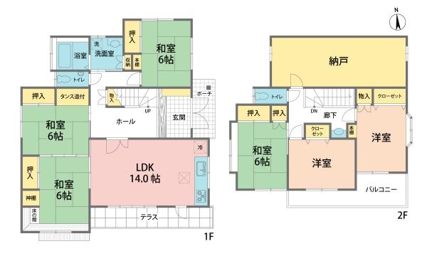 6LDK+納戸の広々とした間取り!収納スペースも多くお部屋の整理整頓がしやすいです。土地68坪超とゆったりしており、閑静な住宅街で住みやすい住環境。