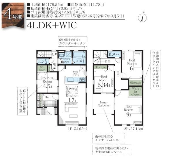 土地面積 | 179.55m² (54.31坪) | 建物面積 | 111.78u |