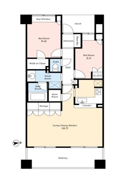 間取り 2LDK (LDK19.7/洋室6.2/洋室5.1)