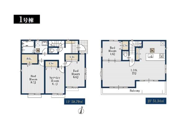 • 間取り図 LDKは広々23帖!南ワイドバルコニーに面し明るいリビング!主寝室はゆっくり寛げる8.3帖!ウォークインクローゼット付きで収納豊富です!
