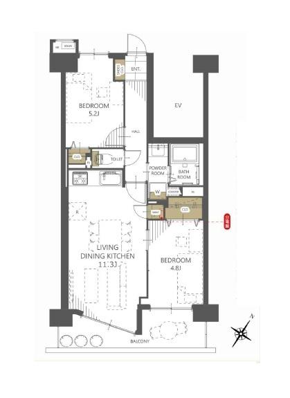 | 間取り | 2LDK (洋室5.2/洋室4.8/LDK11.3) | ||||