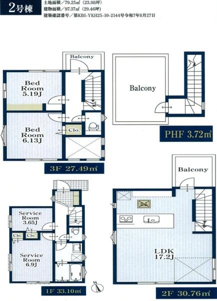 土地面積 | 79.25m² (23.97坪) | 建物面積 | 97.37u |