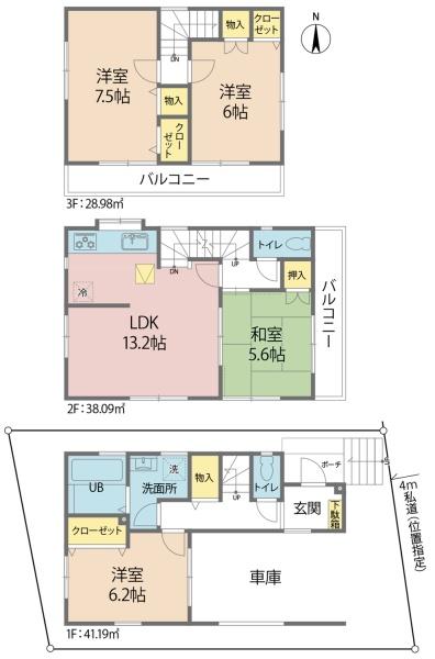 | 土地権利 | 所有権 | 私道負担面積 | - |