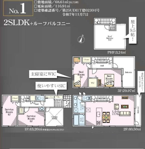 土地面積 | 68.61m² (20.75坪) | 建物面積 | 116.91u |