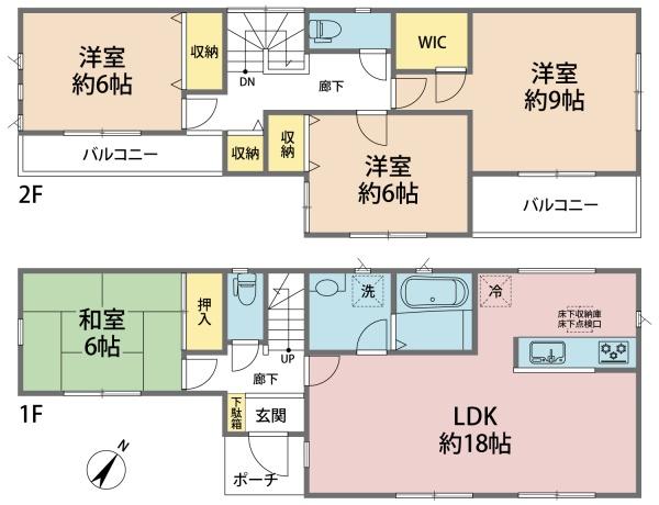 駐車3台可能!日当たりの良い2階建て4LDK!全室6帖以上&全室南東向き!ウォークインクローゼット付き!生活施設が徒歩圏内に揃う利便性の高い住環境です。