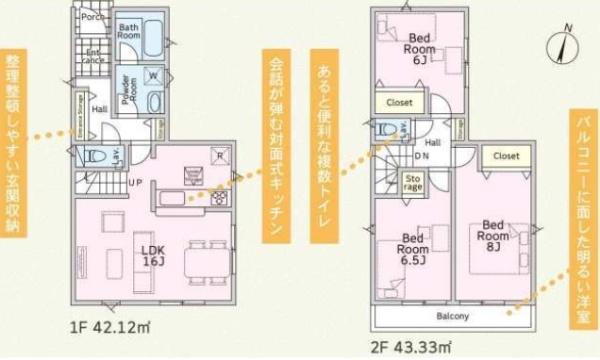 閑静な住宅街!新築分譲住宅全2棟!全棟LDK16帖超!主寝室8帖で住みやすい間取り!全居室6帖以上!豊富な収納スペース!地震に強い制震装置SAFE365を搭載!