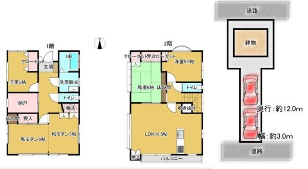 • 現地外観写真 リフォーム物件!南北・道路に面し、風通し良好。普通車縦列2台駐車可能!