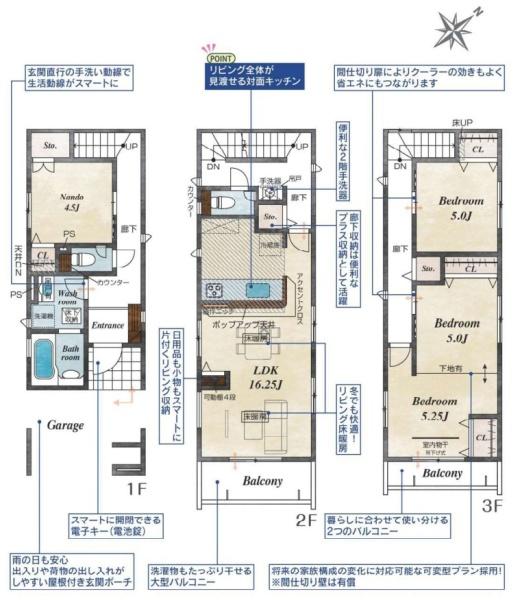 こだわりの新築戸建て全3棟!JR武蔵野線「武蔵浦和」駅徒歩15分!教育、商業施設が徒歩圏内に点在する便利なエリア。陽光降り注ぐ南東側6m公道!2LDK〜3LDKへ変更可能!リビング床暖房完備!