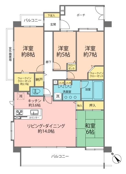 | 間取り | 4LDK (LDK14/和室6/洋室8/洋室5/洋室7) | ||||