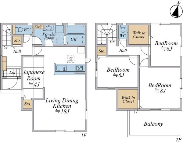 令和2年築の築浅物件!南側公道で陽当り良好!駐車2台可能!全室6帖以上の2階建て!ウォークインクローゼット2つ&ワイドバルコニー付き!