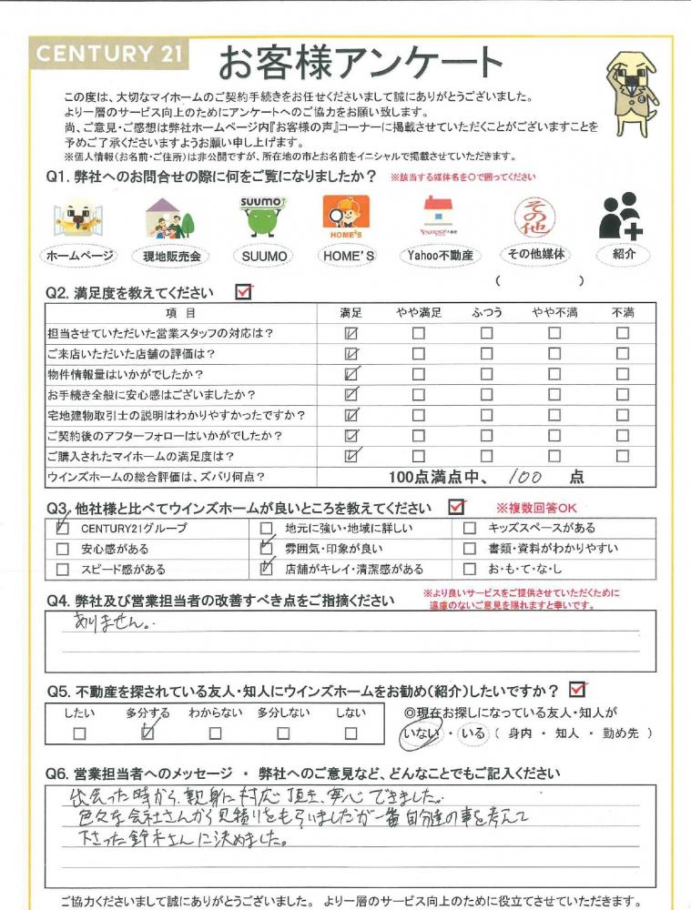 K様 この度は、マイホームのご購入ありがとうございました。 休日にスパに行く途中で現地販売会に立ち寄っていただいたのがきっかけでしたね。 はじめて新築一戸建てを内見して喜んでいただいて、私も嬉しかったです。 これからも末長いおつきあいをよろしくお願いいたします。